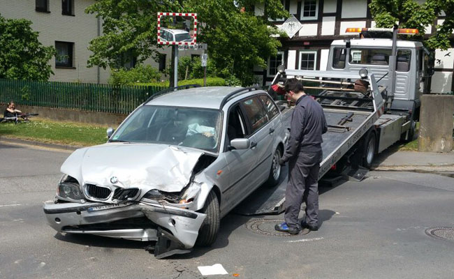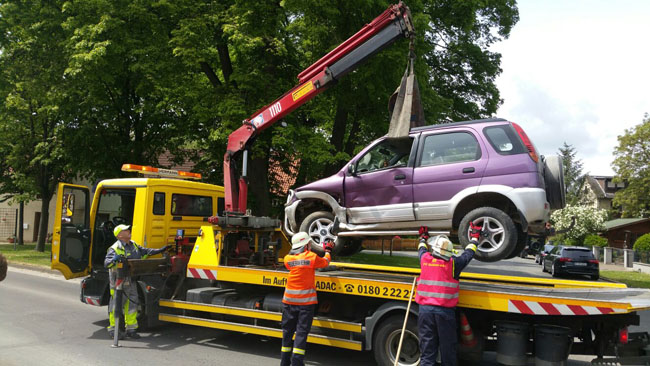 Hergang: Es hatte sich ein Unfall zwischen einem Geländewagen und einem BMW-Kombi ereignet. Der vorfahrtberechtigte BMW hatte den aus der Mörliehäuserstraße kommenden Geländewagen, dessen Fahrer dabei Leicht verletzt wurde, seitlich am Motorraum getroffen. Beide Fahrzeuge waren nicht mehr fahrbereit, und aus beiden Fahrzeugen liefen Betriebsflüssigkeiten aus.