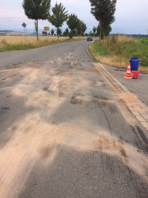 Verkehrsunfall mit auslaufenden Betriebsstoffen auf Höhe Sportplatz